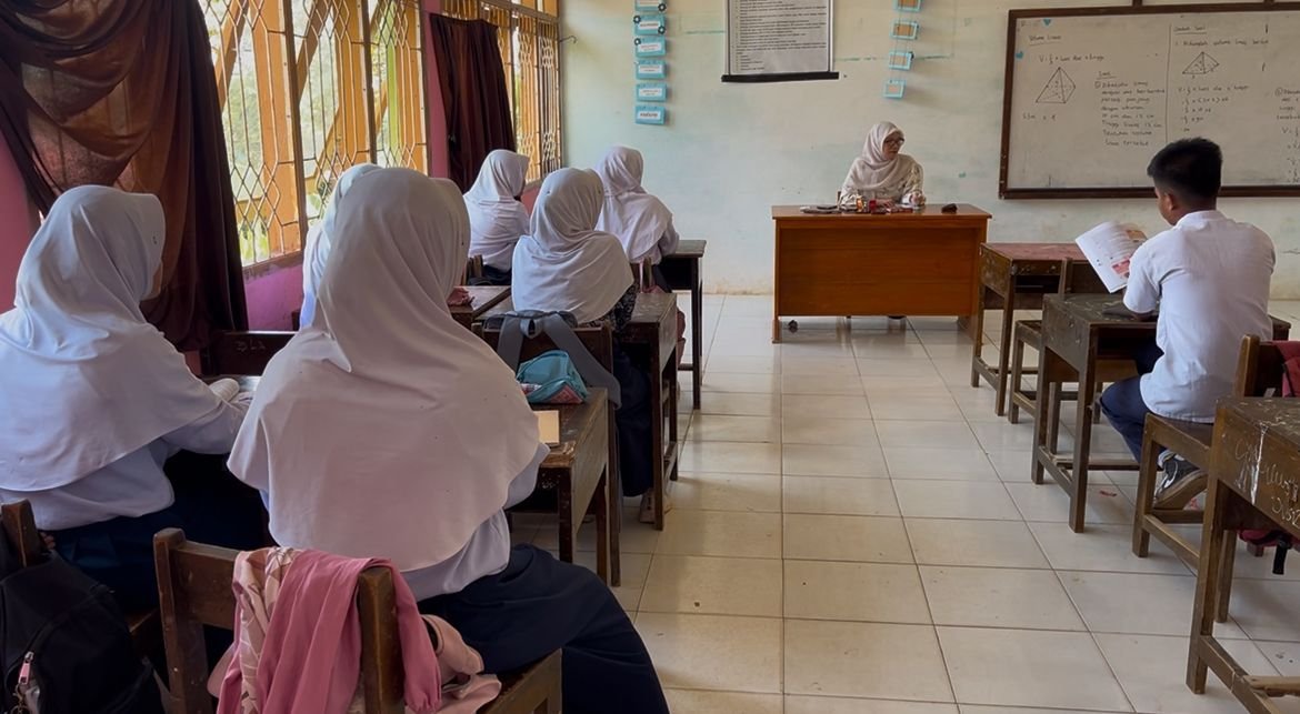 Suasana ruang kelas SMPN 13 Palopo, setelah video pengeroyokan pelajar viral di media sosial. Sejumlah siswa terlihat beraktivitas seperti biasa.