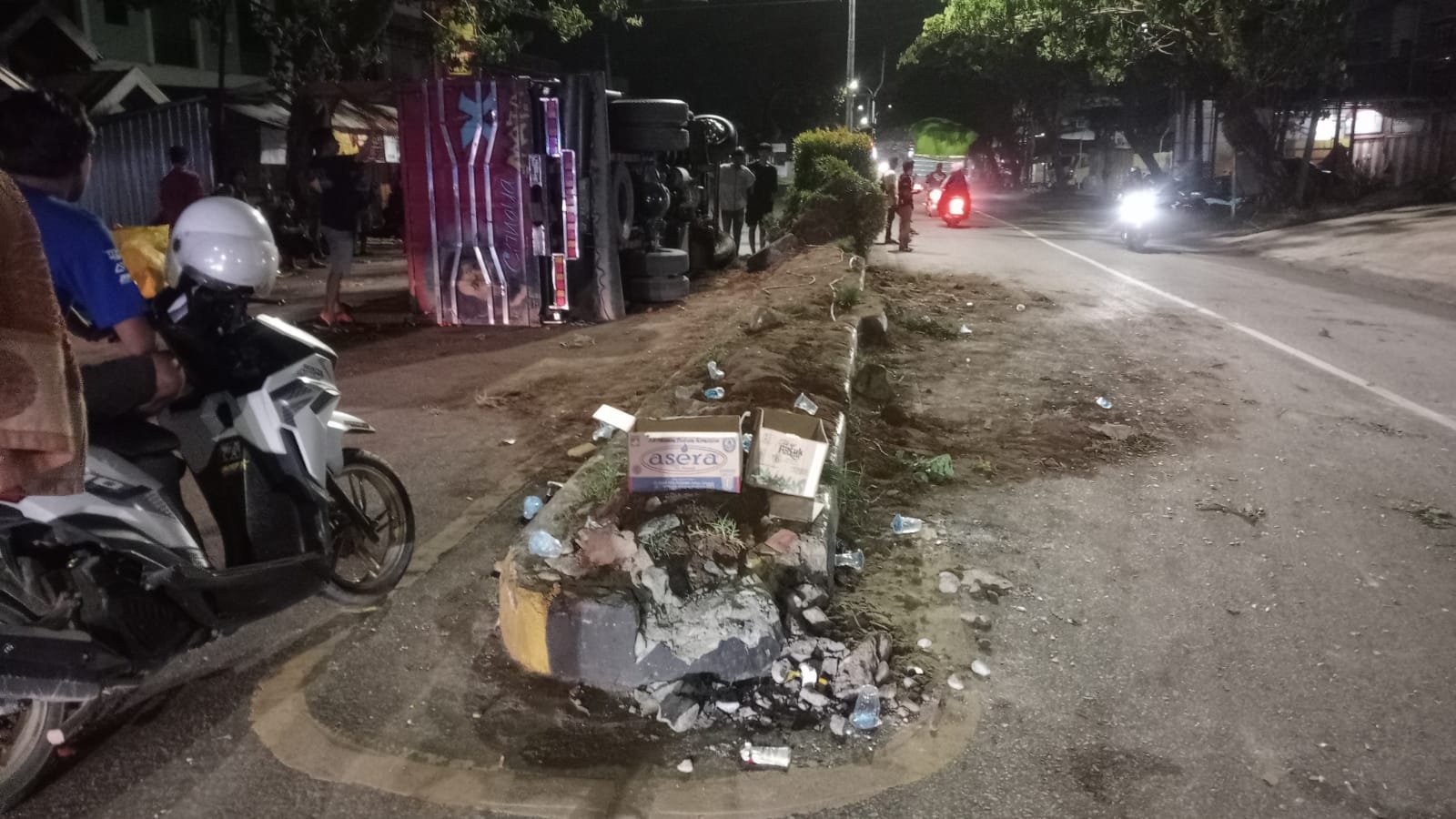 Anggota Patroli Satlantas Polres Palopo, Aipda Jusman mengatakan, truk tersebut menabrak pembatas tengah jalan.