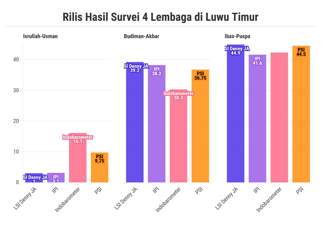 20 September 2024, Lingkaran Survei Indonesia (LSI) Denny JA merilis tingkat elektabilitas 3 pasangan di Pilkada Lutim yang menempatkan Ibas-Puspa unggul dengan tingkat elektabilitas 44,9%, disusul Budiman-Akbar 39,2%.