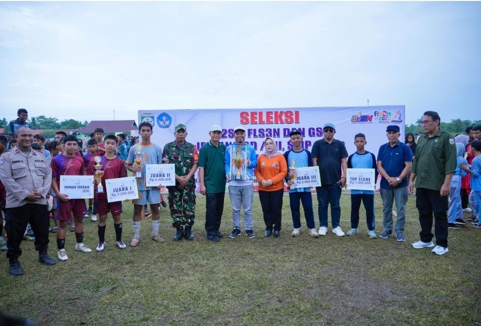 MOROWALI, TEKAPE.co – Wakil Bupati Morowali, Iriane Iliyas, secara resmi menutup rangkaian kegiatan seleksi Olimpiade Olahraga Siswa Nasional (O2SN), Festival Lomba Seni dan Sastra Siswa Nasional (FLS2N), serta Gala Siswa Indonesia (GSI) tingkat SD/MI dan SMP/MTs se-Kabupaten Morowali, yang digelar di Lapangan Sepak Bola Desa Wosu, Kecamatan Bungku Barat, Jumat (23/5/2025).