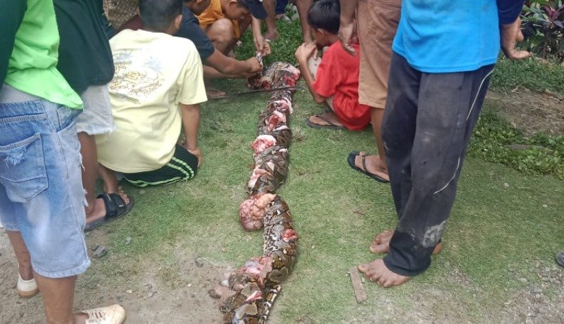 Warga kemudian memeriksa sekitar lokasi kejadian dan menemukan seekor ular Piton dengan panjang sekitar empat meter.